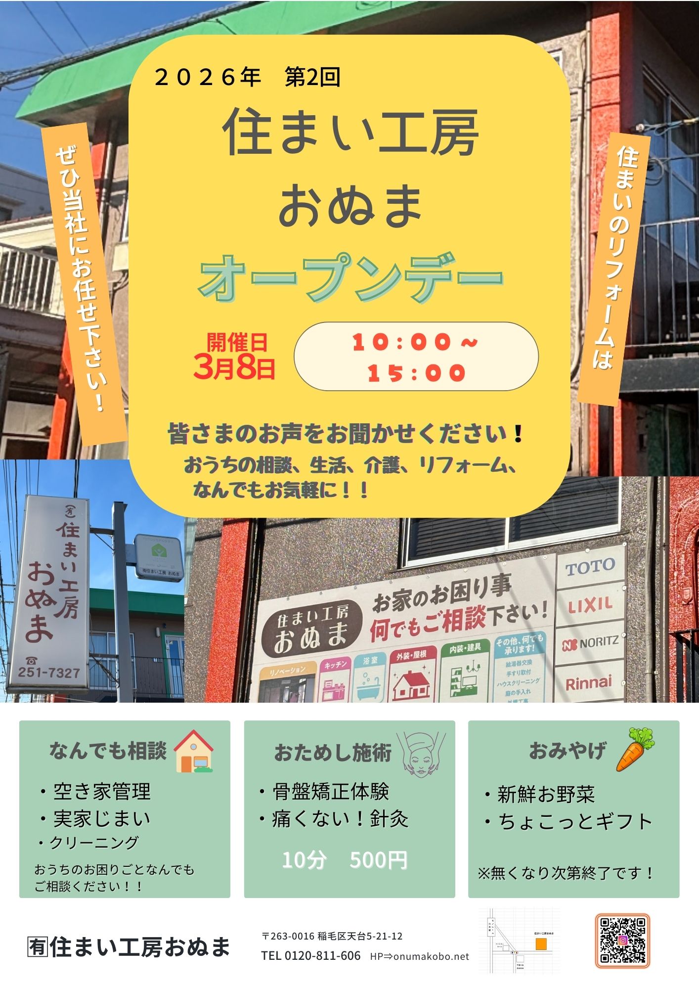 2月1日、今年最初の「住まい工房おぬまオープンデー」を開催しました。